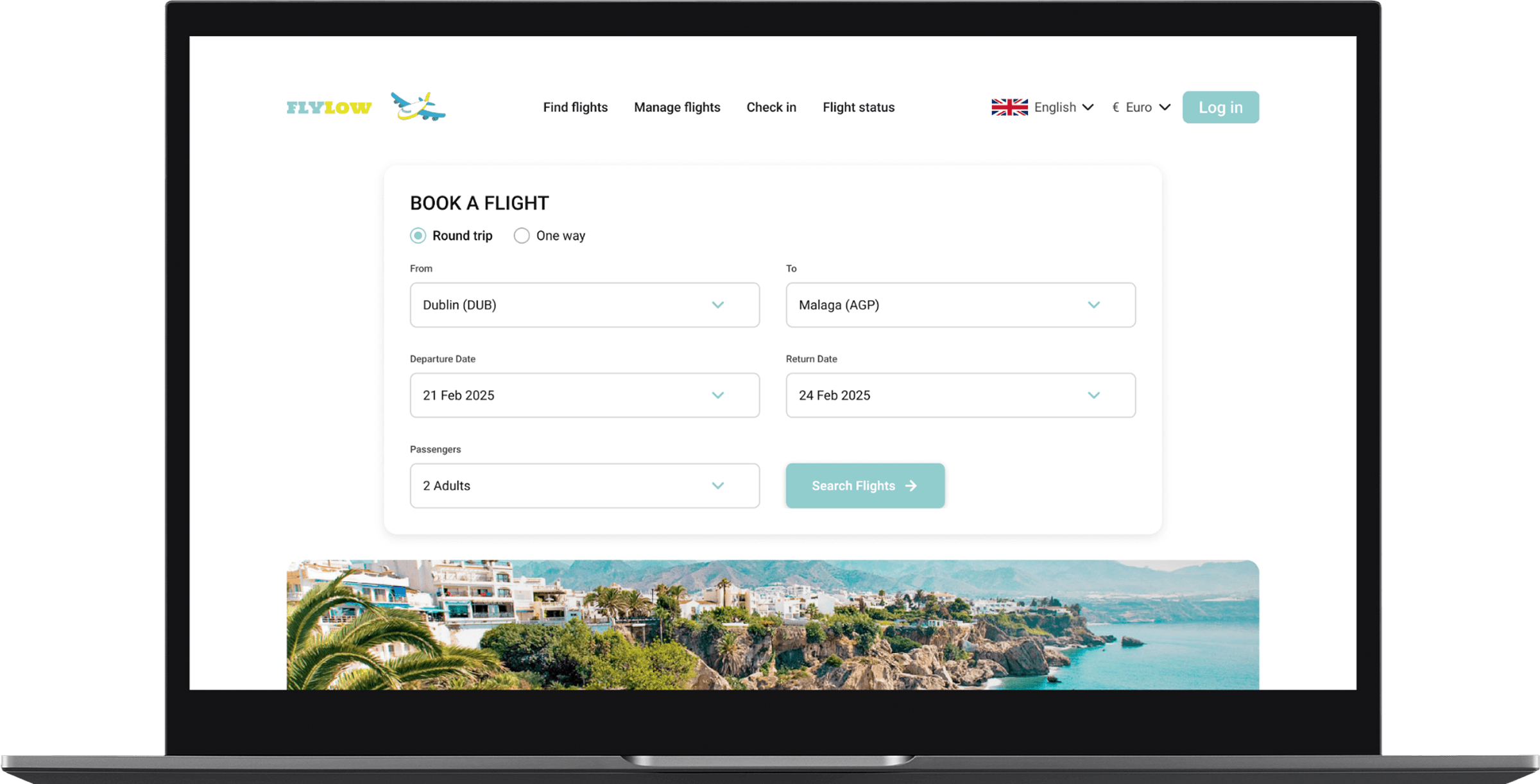 FlyLow is a concept flight-booking platform for desktop designed to address common pain points in low-cost airline experiences. The project focuses on simplifying flight comparison, streamlining passenger flows, and introducing AI-assisted seat selection to reduce decision fatigue and improve booking efficiency.