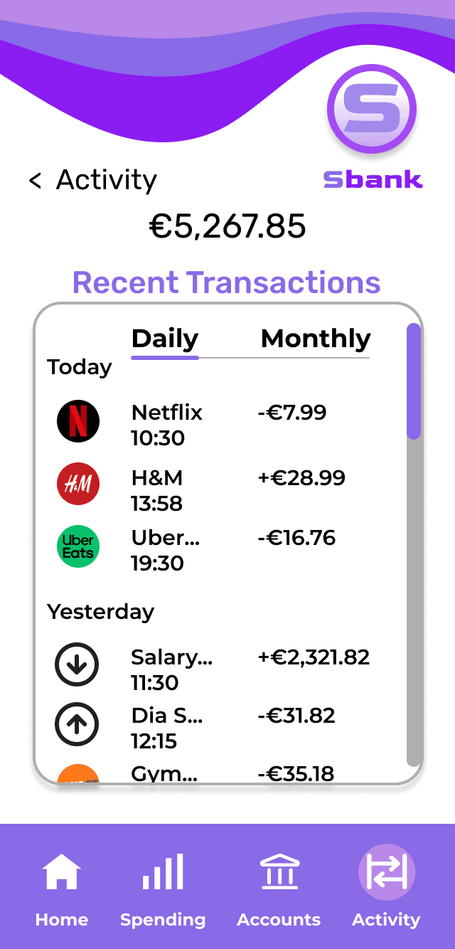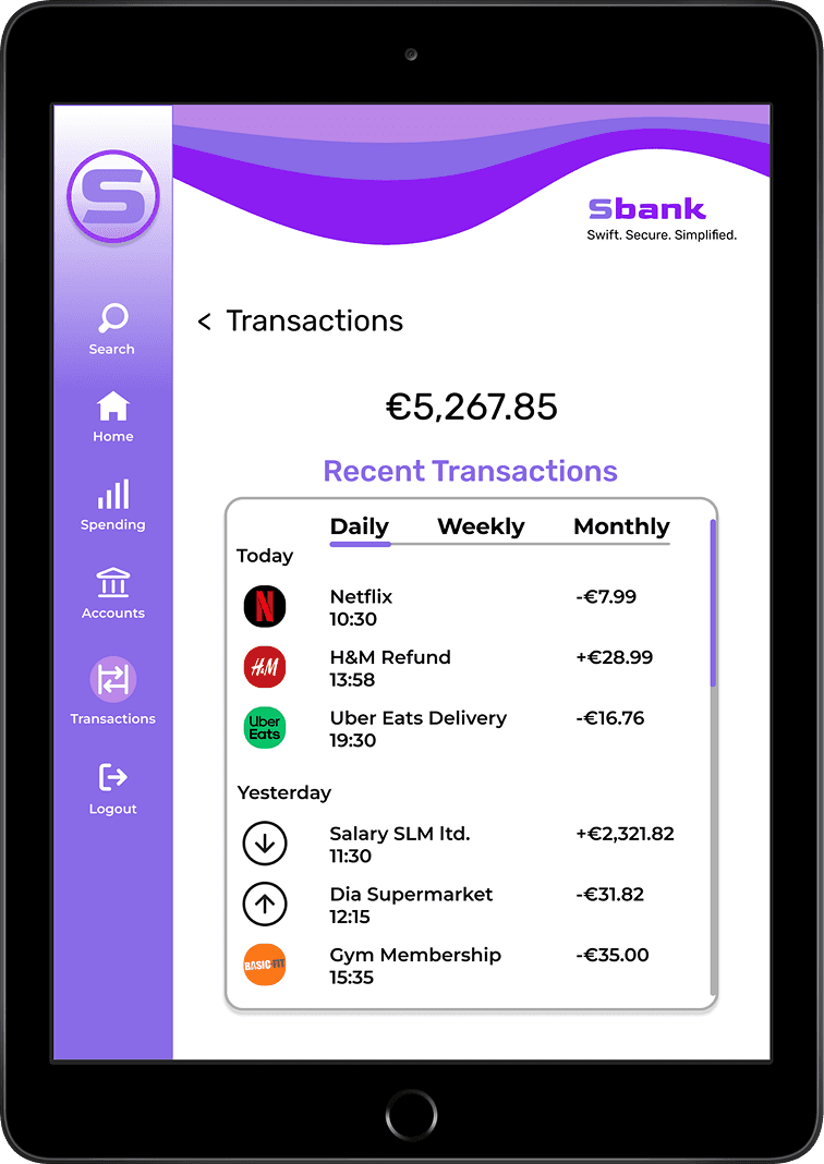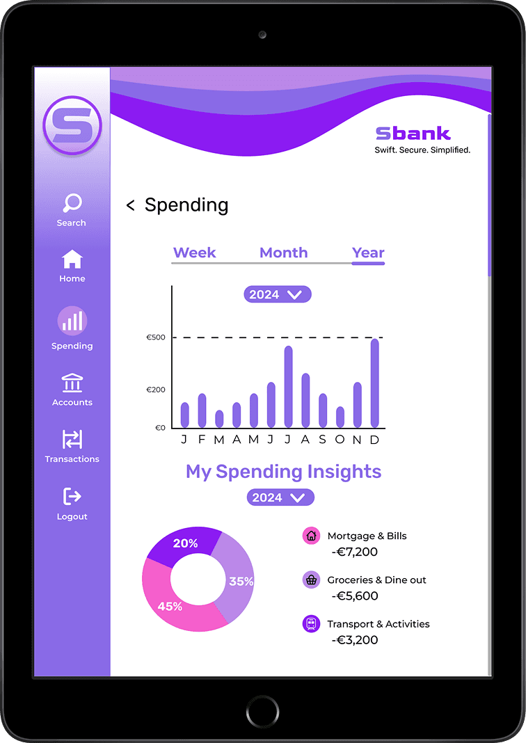 Designing Sbank has been one of the most rewarding parts of my design journey. I’m proud of how the different navigation bars, brand curve and tagline came together to create a consistent and recognisable identity across mobile, tablet and desktop. This project taught me how subtle shifts in alignment, spacing and hierarchy can dramatically improve clarity and usability.