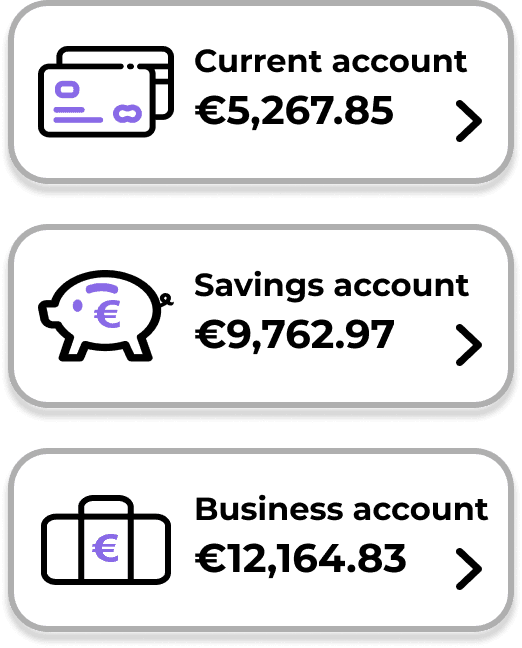 Account selection cards — Current, Savings and Business (Mobile)